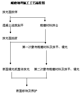 (1)耐磨材料撒布的時機隨氣候、溫度、混凝土配合比等因素而變化。撒布過早會使耐磨材料沉入混凝土中而失去效果;撒布太晚混凝土已凝固,會失去粘結(jié)力,使耐磨材料無法與其結(jié)合而造成剝離。判別耐磨材料撒布時間的方法是腳踩其上,約下沉5mm時,即可開始第一次撒布施工。