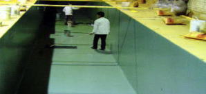 ⑤乙烯酯中涂:將調(diào)配好的乙烯酯中漆用鏝刀均勻涂布一至二道;