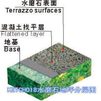 水磨石因其原材料來源豐富,價格較低,裝飾效果好,施工工藝簡單等優點,獲得較為廣泛的應用。水磨石也是一種人造石,用水泥做膠結料,摻入不同色彩,不同粒徑的大理石或花崗石碎石。經過攪拌、成型、養護、研磨等工序,制成一種具有一定裝飾效果的人造石材。