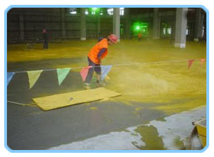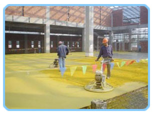 首先澆倒基層混凝土并夯實,混凝土強度不低于C25,混凝土必須含350/m3以上的水泥級水灰比<0.45;找平層必須是細石混凝土及其厚度不可少于50mm。現場落度在75~100毫米之間;然后用專用抹光機加圓盤進一些步平整混凝土,保證混凝土表面平整、密實。在混凝土初凝的時候開始撒播KETCH200特殊合金耐磨骨料,同時使用抹光機加圓盤壓實抹平。