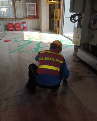 2 用KETCH419系統(tǒng)專利環(huán)氧封閉底漆打底,使其滲入水泥中,一則封閉水泥中的毛細(xì)孔,起防潮作用,二則修補(bǔ)地面蜂窩麻面及坑洞,保證地坪的基礎(chǔ)牢固;